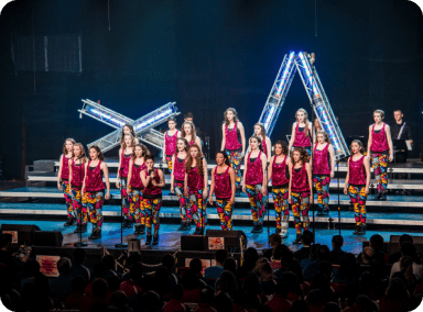 We blend singing, dancing, and theater, crafting captivating performances with music, movement, costumes, and storytelling.